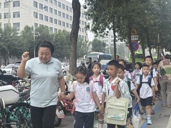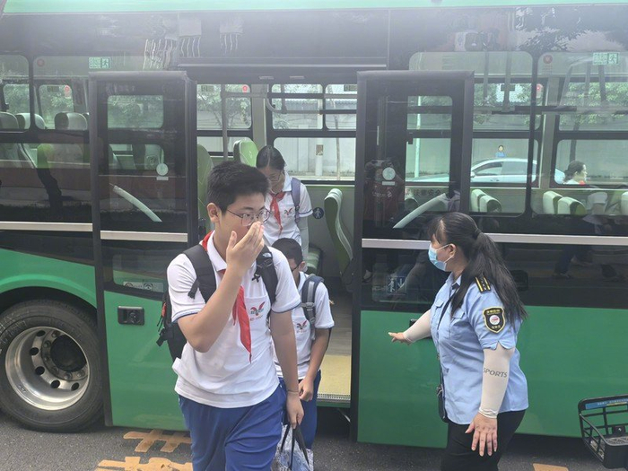 學(xué)校老師引導(dǎo)低年級(jí)同學(xué)下車(chē)后有序進(jìn)入學(xué)校/記者拍攝 從2023年推出以來(lái),通學(xué)公交始終以破解家長(zhǎng)“接送難”為目標(biāo),為學(xué)生和家長(zhǎng)提供安全、便捷、舒適的定制化公交服務(wù)今年秋季學(xué)期,線(xiàn)路服務(wù)范圍也進(jìn)一步擴(kuò)大。